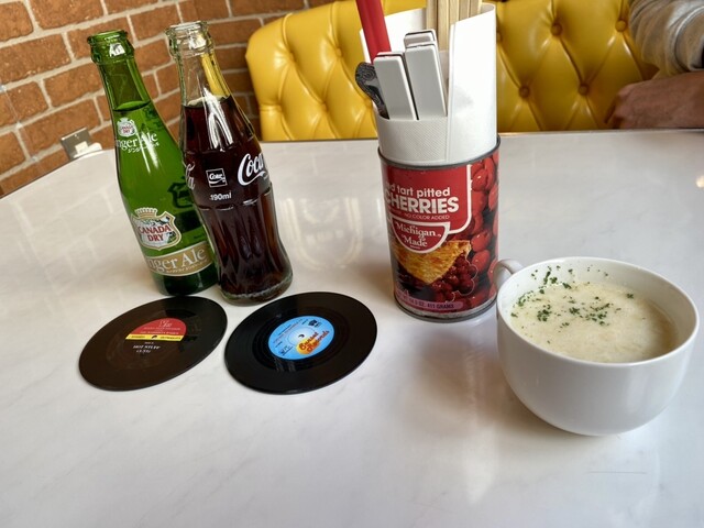 ランチプレートはサラダとポテトとドリンクが付くけど、私はコーンスープにしてみた。