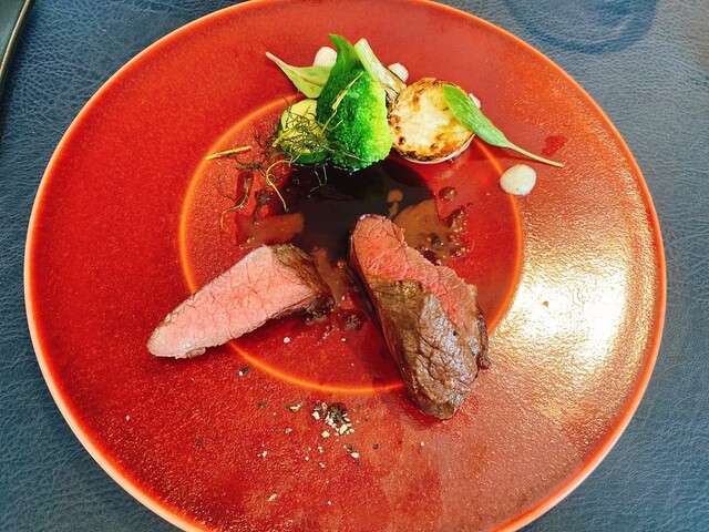 和牛を頼んだのですが、なんと二種!黒毛和牛と、赤毛和牛!毛の赤い牛さんがいるそうです…!二種食べ比べ、初めてしたのでとっても嬉しいです。そして美味しい…!