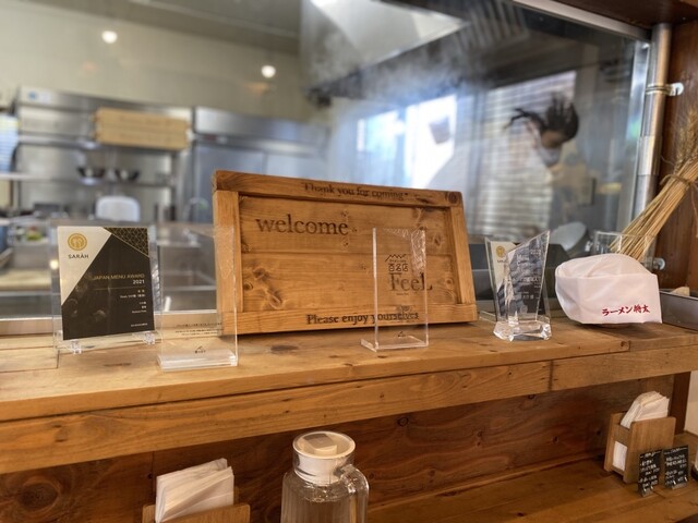 店名は「想い」。「1杯のラーメンを通じて、生産者、職人の想いを感じ、先人が辿ってきた道筋を感じ、それを思う」「それらの思いを、ラーメンを通じて食べ手にも伝えることができれば」との願いを込めたもの。
