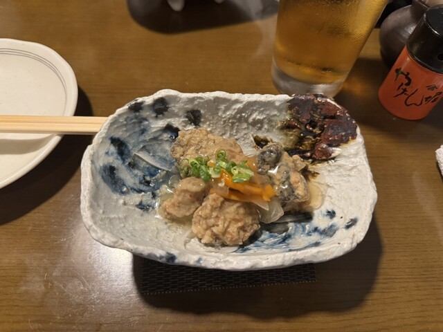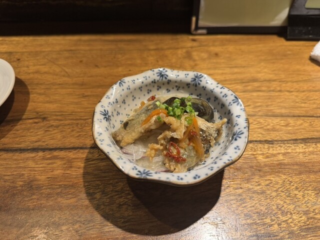 モモ焼き、ごぼう天ぷら、カキフライ、ニシン刺身、ウナ玉、エイヒレ。