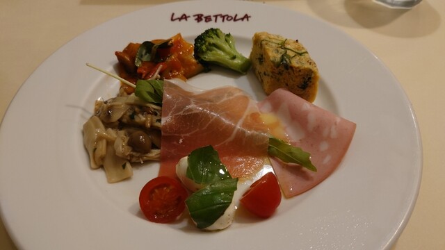 ある日の平日、13時15分からのを予約して初めて行きました。席に座って注文を取りに来るのに少し時間があり、15分くらいメニューを見て考えました。Bコースで前菜はテリーヌを頼もうとしましたがもうないとのことで、本日の前菜の盛り合わせです。どれも少しづつですが美味しい!続いてパスタは新鮮なうにのスパゲティを中盛(75gで+440円)。うにが結構いっぱい入っていて、濃厚で美味しい!最後のメイン料理は仔羊の香草グリル(+330円)。間違いない美味しさ!最後にデザートのメニューが来ましたがお腹いっぱいで頼みませんでした。また来たいと思います!
