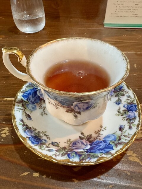 迷いに迷って前菜は盛り合わせ、メインはたらのカレー風味グラタン、デザートはマンゴーのミルフィーユ、ドリンクはホットティーに。