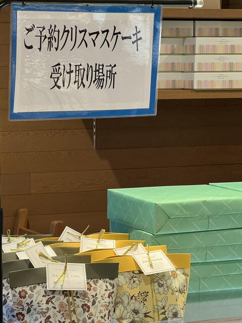 前もって予約済みのケーキを受け取りに入店!