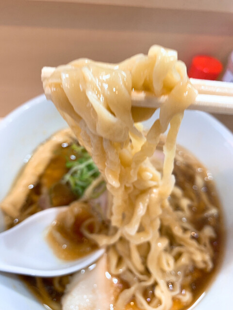 中村の中村たる所以の「手揉み麺」こいつが素晴らしく旨いのだ。無骨に幅が違う形状は啜る楽しさを生み出して、加水率の高さが喉ごしの良さを出している。完璧。