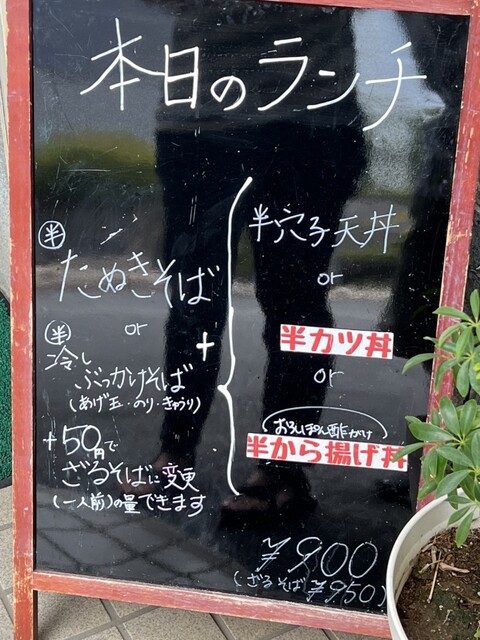 お店入り口のブラックボード。帰りには半海老天丼が売り切れになってました。