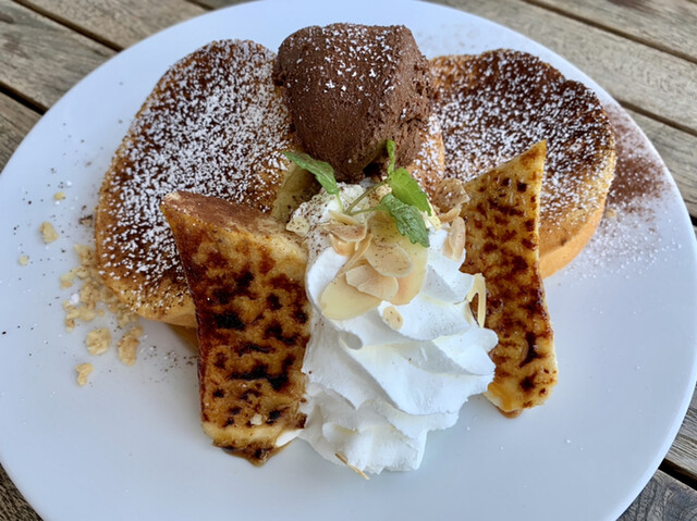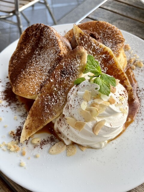 ふわふわパンケーキと美味しい食事、テラス席が気持ちいいです☆
