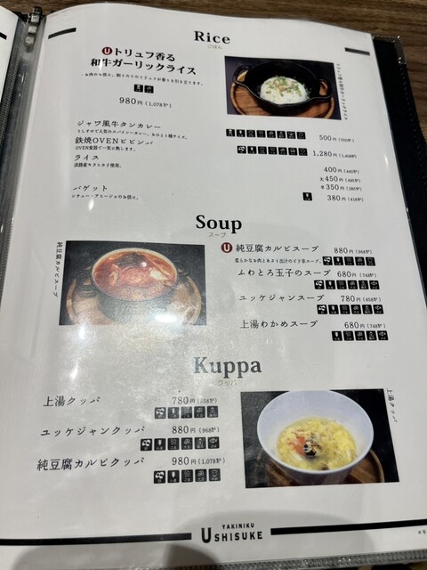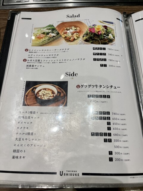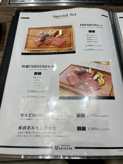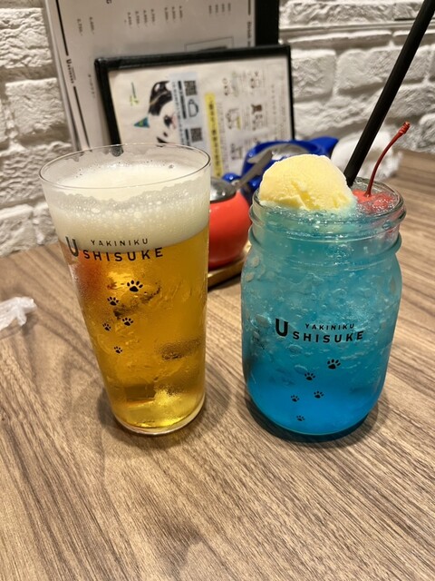オーダーは、特選USHISUKEセット ハーフ、チョレギサラダ、グツグツ牛タンシチュー、ジャワ風牛タンカレー、上湯クッパ、クリームソーダ、ブルーレモンサワー、レモネードサイダー、ワンちゃんチキンMです。