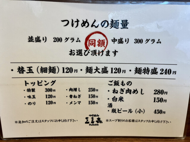 オーダーは、一番人気の濃厚つけめん味玉煮番搾り(税込1100円)を、麺中盛りの300g、あつもりにてお願いしました。