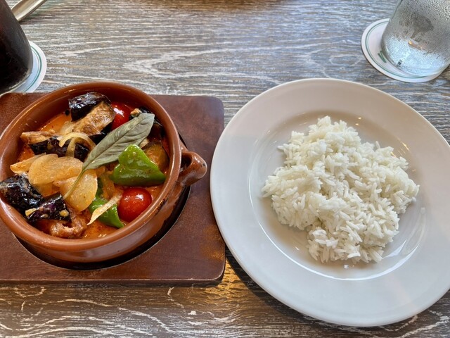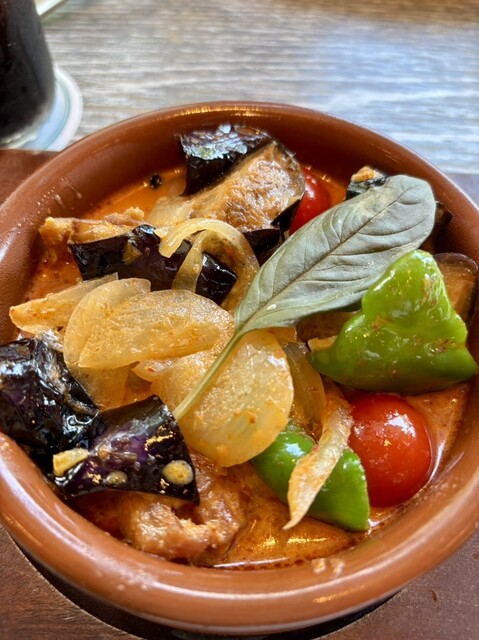 レッドカレーはナスが沢山入っており、2辛ですが辛いのがそんなに得意ではない私でも食べれて、ココナッツミルクが本格的なタイ風で美味しかったです。