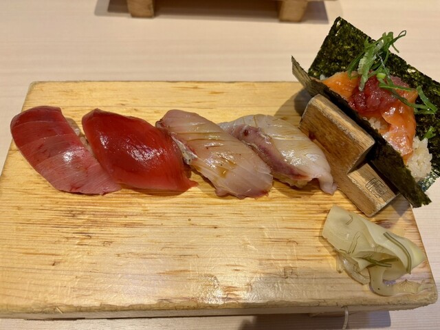 梅セット(中トロ、赤身、日替わり2種、ネギトロ)