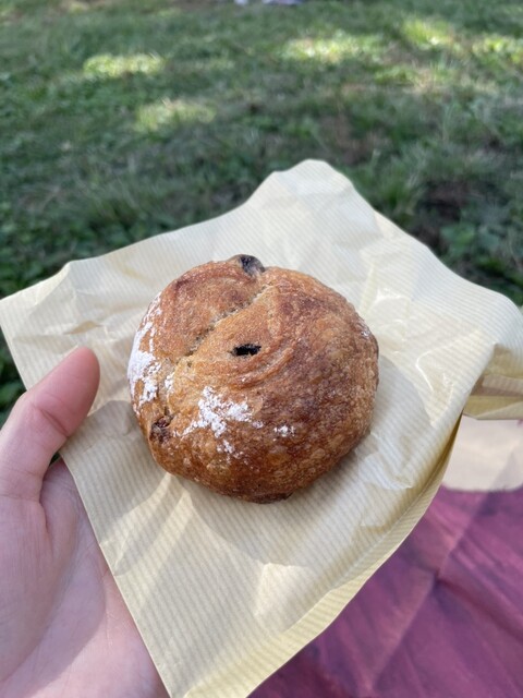 都内で人気のパン屋さんは、デニッシュやクロワッサン、スイーツ系のパンが多いところが多いけど、ここはカンパーニュやバケット以外のハード系パンも多くて嬉しい。フルーツの乗ったトーストは、梨、柿など秋のラインナップでした。トーストのアーモンドクリームは、砂糖と卵、酒が少し入っているようで、生クリームやバターはなしで安心。