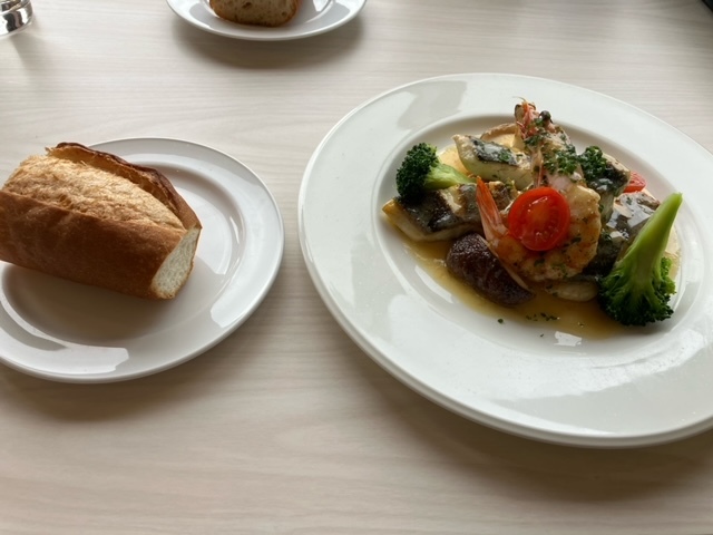 魚料理は白身魚や海老がゴロゴロ入っている。