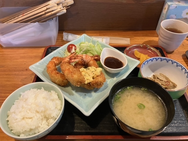 この日は、私はアジフライ定食。連れはエビフライ定食。