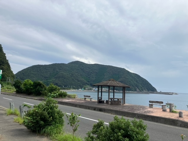 目の前が蒲江の海。海を見渡せて食事が出来るテラス席も良いけどこの日はあいにく雨。