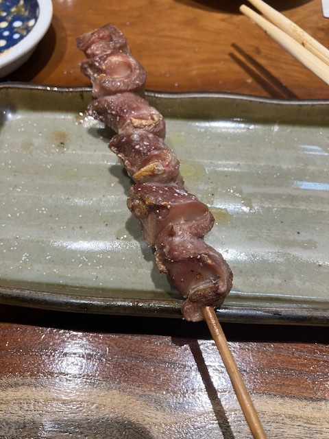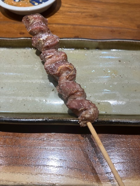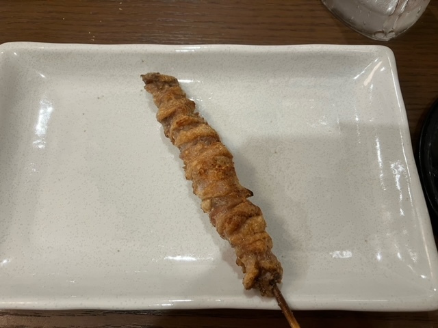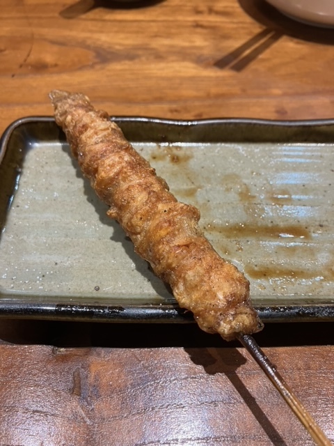 福岡ではぐるぐる巻いた鳥皮が人気だけどこちらのお店の皮は私的にはそれを上回る。