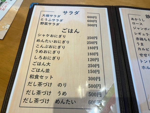 今回も馬焼肉の定食とジャンボハンバーグの定食を注文。