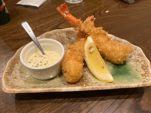 一品料理のエビフライはぷりぷりで大きな身が存在感あるね。