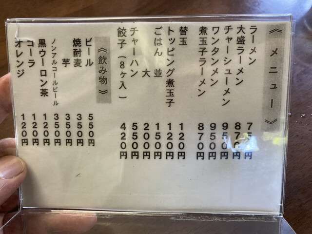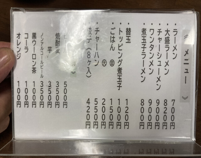 ラーメン800円、大盛りラーメン950円、替え玉150円!