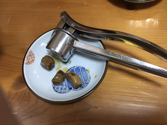 クラッシャーは漬けニンニクやってみたが、やわすぎて難しい。綺麗に出ません(笑)