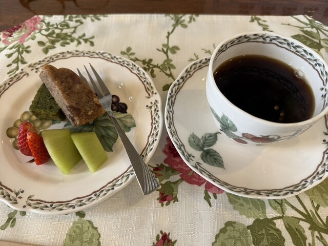 小さいデザートは、宇治の抹茶のパウンドケーキと苺のパウンドケーキにフルーツは苺とキウイです。