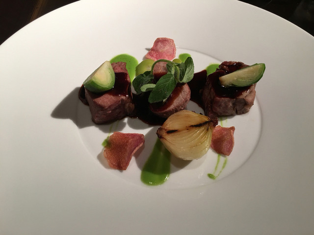<クリ>のローストは、脂肪分少なめの赤身の肉で、旨味も強く味わい深い。秋の野菜も素晴らしく美味しかった。