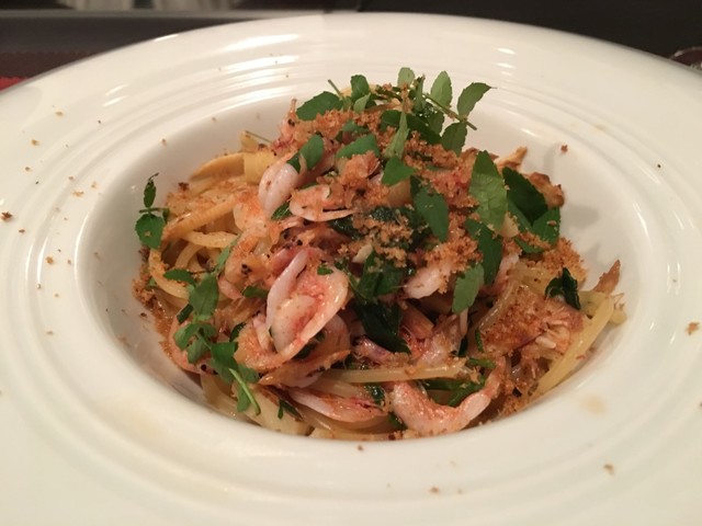 今回の一番のお気に入り料理は、鮎のラグーソースとケッパー スパゲッティー。濃厚な鮎の旨味が素晴らしい。