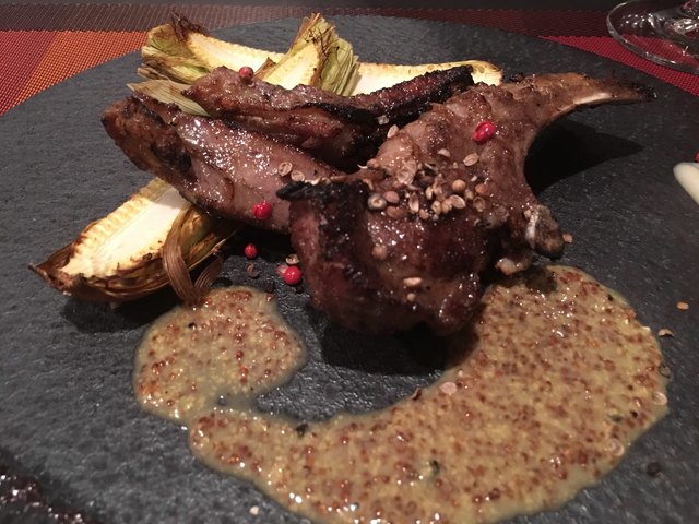 カシスなど黒のベリー系の香り。まだワインが若く、酸味も渋みも強いが、肉肉しいこの肉と合わせるのは、それほど問題なかった。