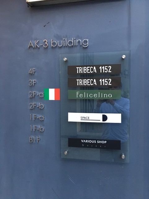 中目黒駅から徒歩10分弱。ビルの2階にあるが、2階には他の店舗がもう1つあり、一瞬迷う。奥の方が、フェリチェリーナ。
