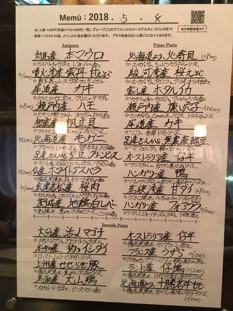 ゴールデンウィーク後半の祝日のディナー。今年のゴールデンウィークは、ほぼ食い倒れウイークとなっているが、本日は、前日に予約して、中目黒にあるイタリアン、フェリチェリーナへ。