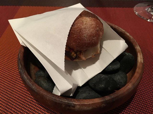 見た目から美味しそう。赤ワインと合わせて美味しくいただいた。ただ、火入れは、今一歩かな。