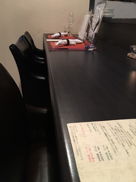 中に入ると、カウンターのみ13席のこじんまりとした店内。シックでお洒落だけど、カジュアルさも感じる雰囲気。