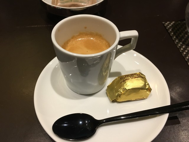 最後にデザートとカフェ。お酒が好きと言ったら、菓子には、グラッパ入りのチョコを出していただいた。