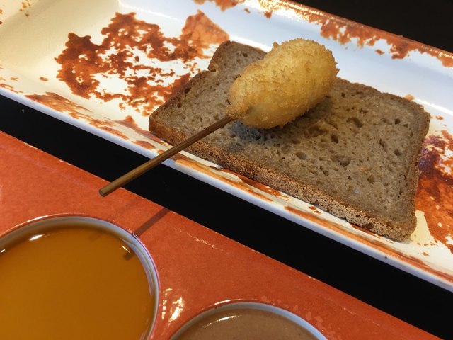 ワインを頼んだが、次々と出てくる多種多様な食材の串揚げに合わせるのは難しい。シャンパーニュなら全方位的にいけそうだが、それだけだと面白くないので、白と赤も頼んだ。
