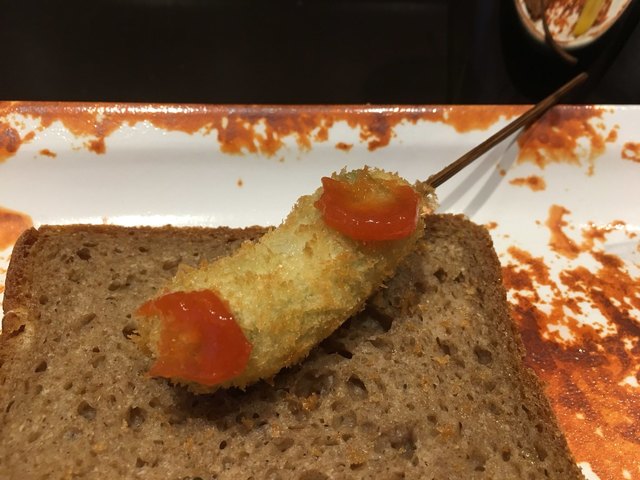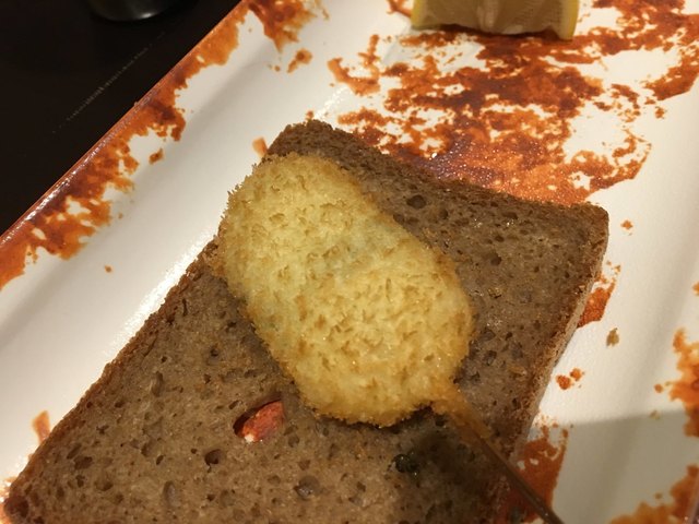 串揚げの出るタイミングとそれに合うワインを飲んでいるタイミングが合えば良いが、うまく合わせるのはやっぱり難しい。泡オンリーが無難か。