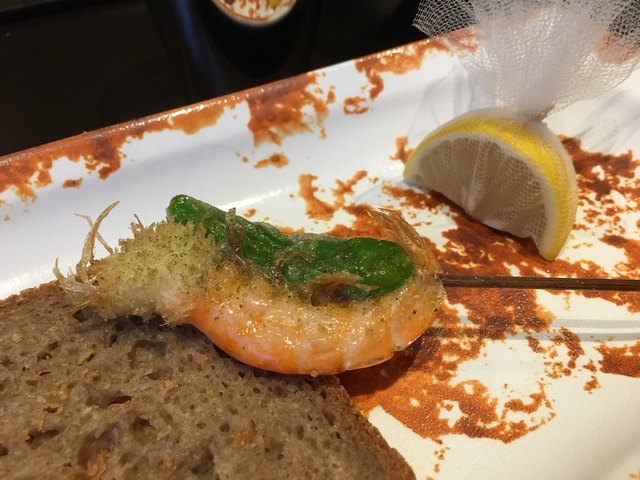 車海老は、お決まりで一番最初に出る。レモンを軽く絞って、塩でいただく。美味い。