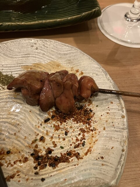 ささみ(わさび、塩)、もも、ネギ、はつ、レバー(めちゃくちゃ濃厚で柔らかい)、手羽先、つくね、うずら、スナップエンドウ、やげん軟骨、ナス、しいたけ、ちょうちん。素晴らしいラインナップだけど、お肉の方がいがいにも忘れてしまいました。