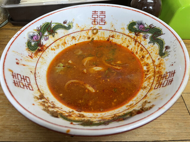 ある程度食べた所で、スープ割りをもらう事が出来るので坦々麺に変身。最後まで味を楽しむ事が出来る。