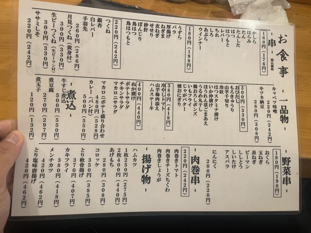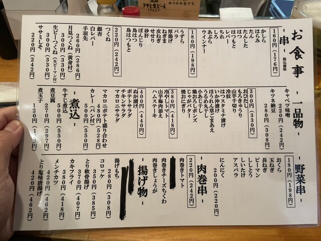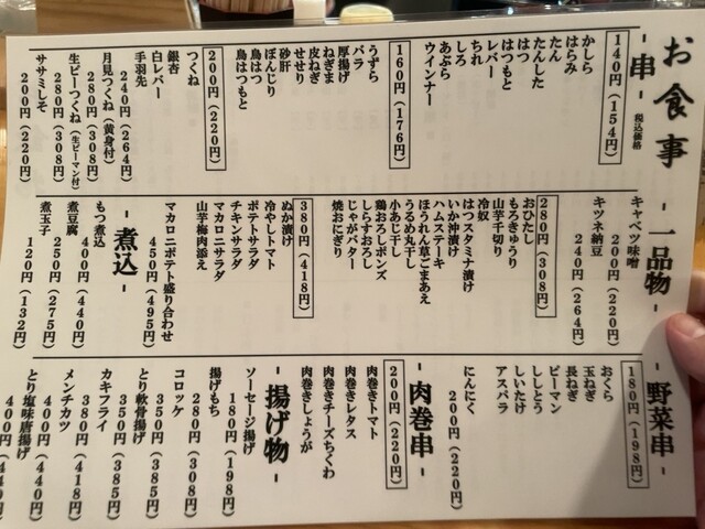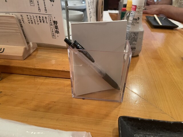 料理は紙に書いて注文するスタイル。前回は本店でやきとん頼んだので、やきとりをメインにオーダーして見ました。