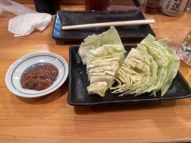 キャベツにはニンニク味噌がついてくる。キャベツシャキシャキで良いつまみになる。