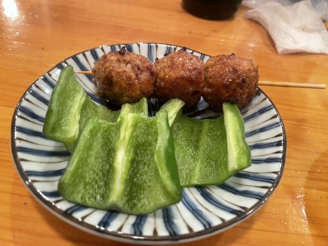 今回初めて食べる生ピーつくね。つくねは甘みがあって美味しい!ピーマンシャキシャキ。
