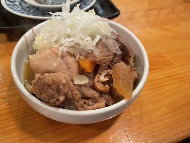 煮込みはもつが一杯。濃くなく優しい味で凄い美味しい。もつは柔らかくて熱々で美味い!柔らかさ最高じゃないでしょうか。