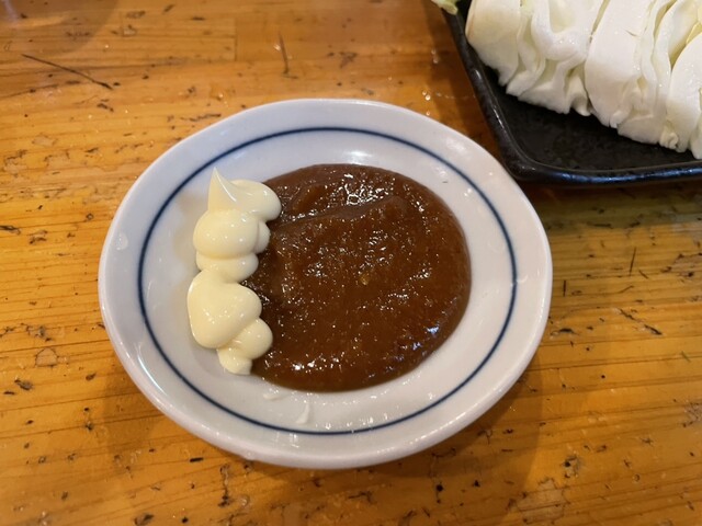 秋元屋出身のお店でも結構あるのですが、秋元屋に来たらいつもこれを頼んでます。キャベツがシャキシャキ!味噌はニンニクが効いてて美味い!この味噌につければこれだけでつまみになる感じです。