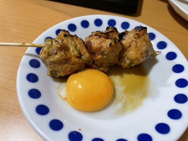 つくねは、何時もは焼かないパターンでこのお店のつくねは大好きなんですが、今回は焼くタイプみたいです!焼くタイプあるのか笑 生卵に絡めて食べるみたいですが、全然違う形で凄い美味い!カリカリ感出ているし、今までとは全然違うけど凄い美味しい!やば!
