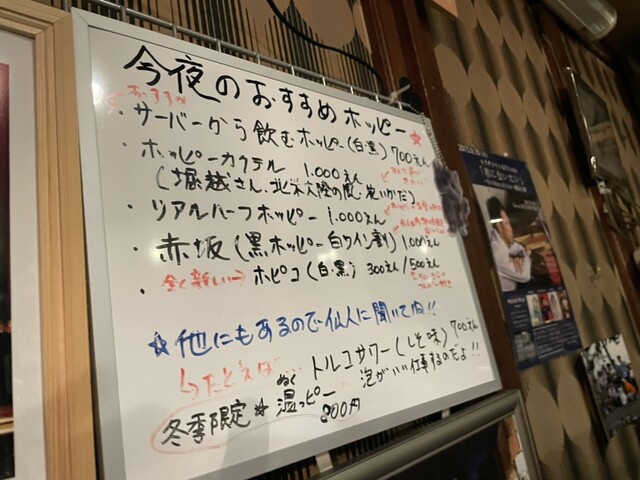 店の名前の如く、仙人(店主)がいらっしゃって色々としゃべって教えてくれました。この方はホッピービバレッジの会社からホッピー大使として公認されてるみたいです。20周年のお祝いとして金宮から特別なボトルがプレゼントされてたりとホッピー好きとしては羨ましい環境です。