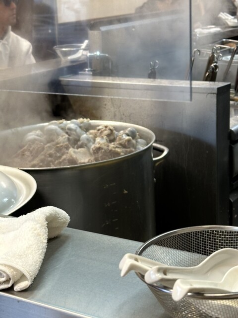 食事中豚骨の入った寸胴に、新しいガラを加えて積み重ねている様子から、もしかしてそうかも知れない。
