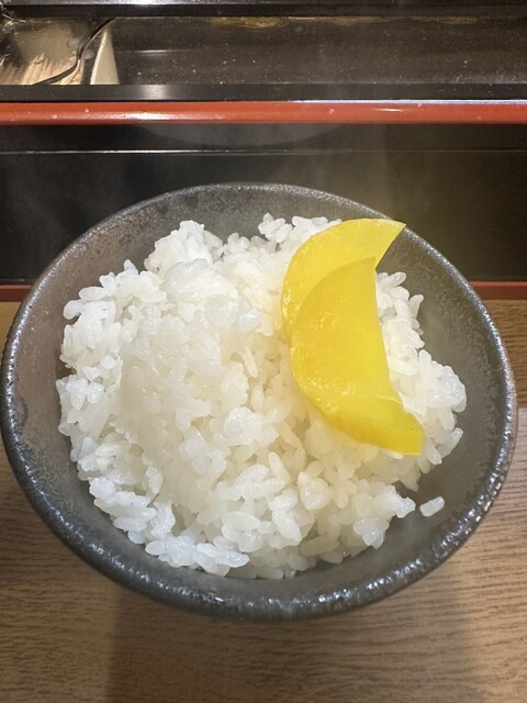 ライスもたくあんと細切れチャーシューが乗っており、嬉しい☺️海苔で巻いて、秒で完食。
