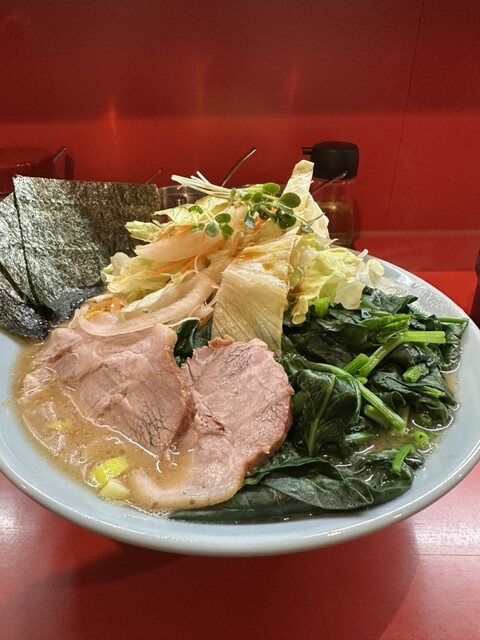 中チャーシュー麺、TPのり、辛ネギ、生ほうれん草