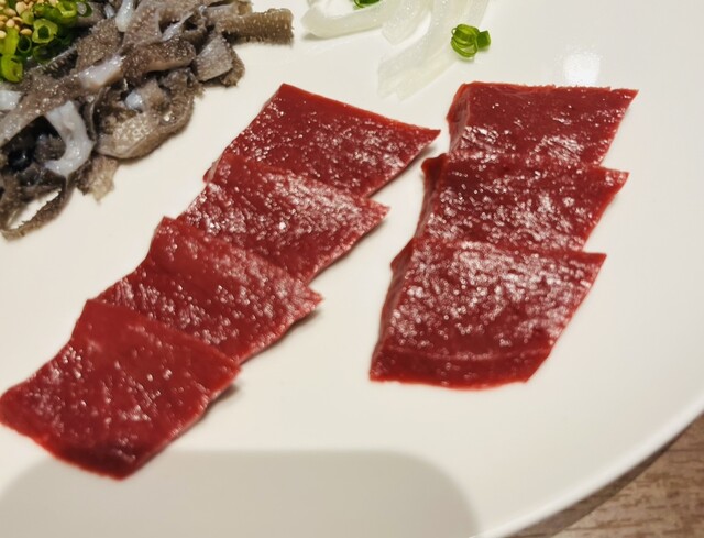 ・センマイ&ハツ刺し→センマイは新鮮でコリコリした食感を楽しめた、ハツは弾力とお肉の甘みを堪能出来た