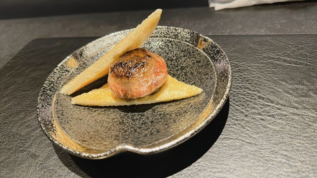 肝心の料理ですが、全てが工夫されていて、素材もこれでもかと最高級肉と高級食材を使った、オリジナル創作料理がでてきます。そしてどれもが美味しい!!墨シャリを使ったお寿司も希少なお米らしく、粒が大きなお米で新しかったです。本当にどれも印象的な料理でハズレなしです。イタリア産ポルチーニの炊き込みご飯、トリュフ風味のユッケハンバーグサンドは僕的にかなり印象的でした。また、店主とも少しお話しさせていただきましたが、とても人柄よく、その点も居心地良いお店だと思いました。