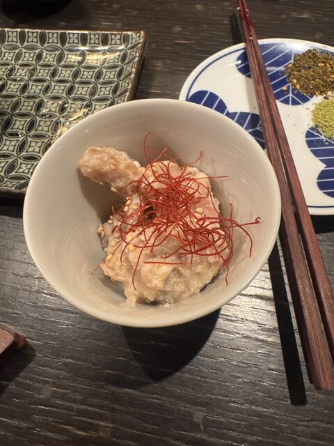 広尾駅から徒歩4分。ビルの2階にいろいろなお店が間仕切りなく並ぶスペースの一角にあります。カウンター席のみの並びです。